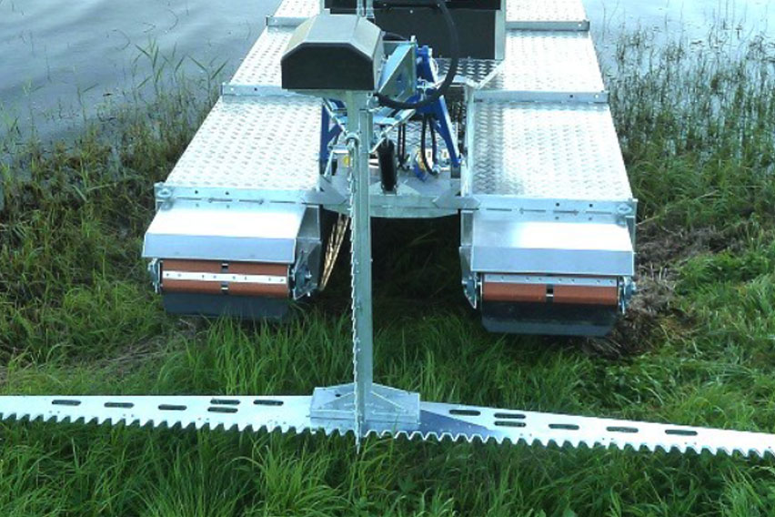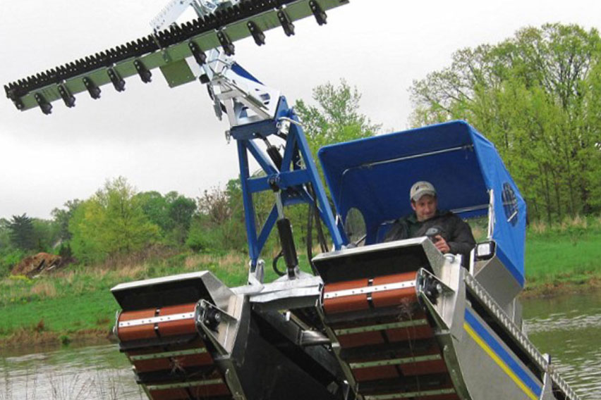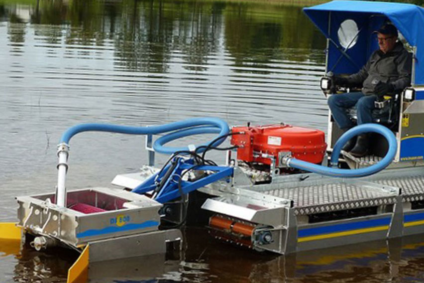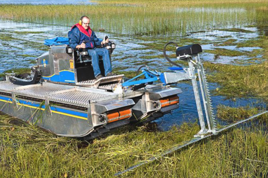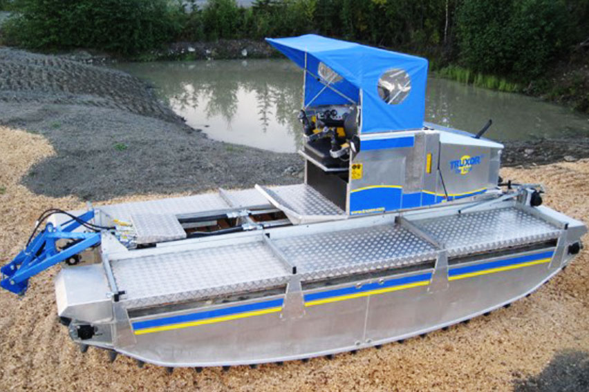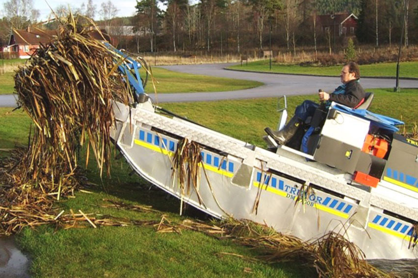 Kétéltű, multifunkcionális, úszó munkagéppekkel végezzük a vízinövények - sás, nád, gyékény, hínár, sulyom - vágását, gyűjtését, rakodását, szállítását és iszapszivattyúzást, olajszennyeződések eltávolítását.